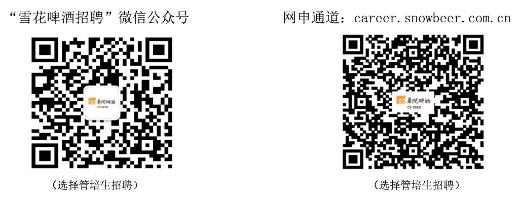 岗位详情请登录华润雪花招聘官网,了解更多信息请关注“雪花啤酒招聘”微信公众号,我们会及时推送相关内容。
